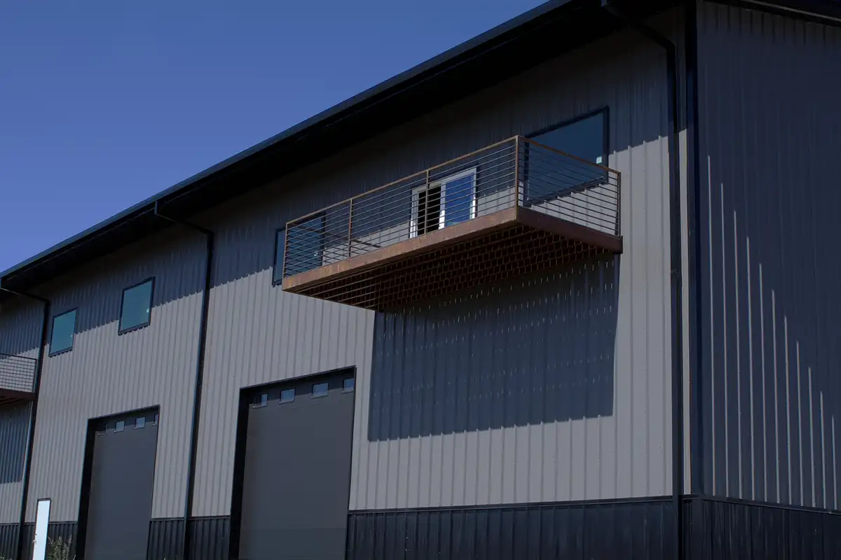 The Salado Airport hangar is a 50'x160'x30' black steel building with black PBR roof, charcoal walls, black wainscot, soffit, trims, and Brandywine PBR hangar door sheets.